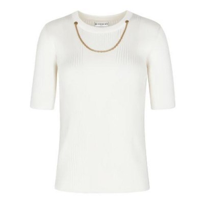 Givenchy/纪梵希 白色粘胶针织的圆领短袖毛衣BW60Q54Z76-100