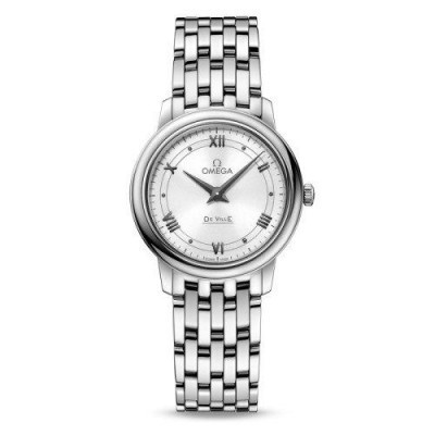 OMEGA/欧米茄 碟飞系列罗马刻度石英机芯女士腕表 钢带白盘